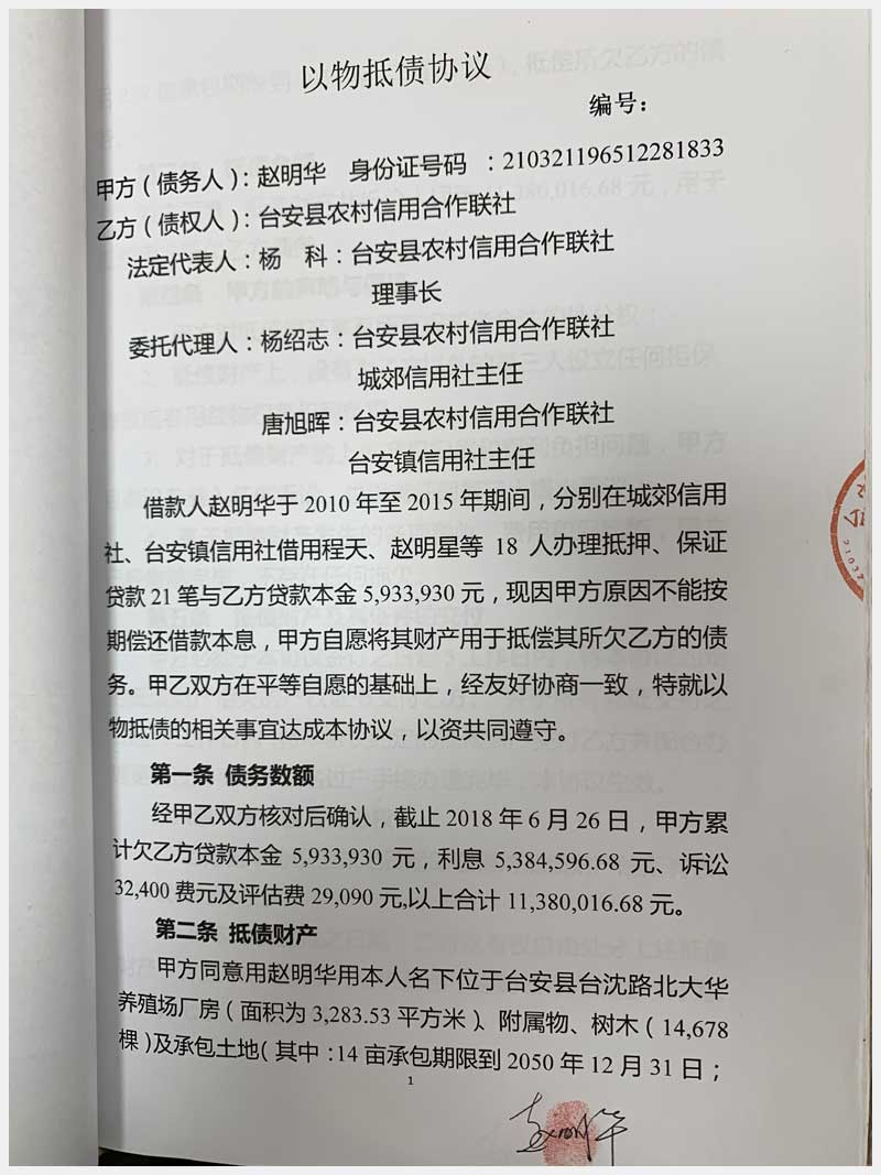 64號(hào) 臺(tái)安縣臺(tái)沈路北大華養(yǎng)殖場(chǎng)3處廠房、樹木、承包地