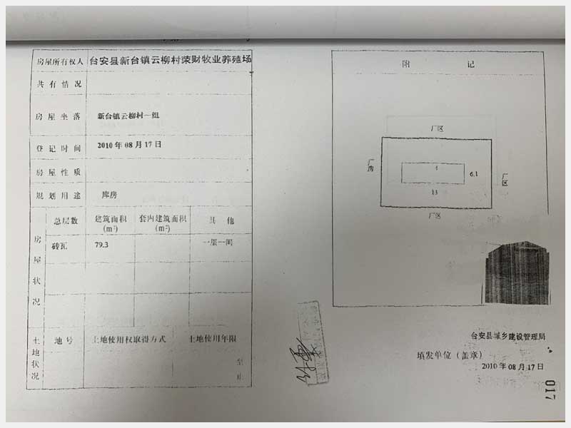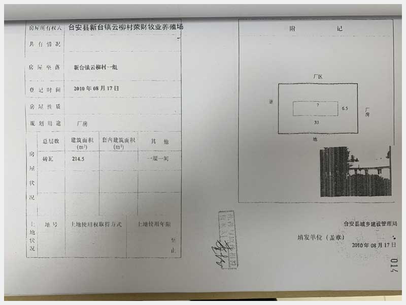 名稱:臺安縣新臺鎮(zhèn)云柳村1組房產(chǎn) 面積:房產(chǎn):2322.38㎡、土地:2500㎡ 瀏覽次數(shù):1342