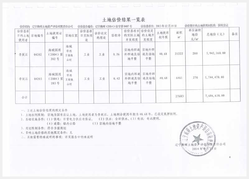 名稱:海城市感王鎮(zhèn)他山村廠房及土地使用權(quán) 面積:房產(chǎn):8458.71㎡、土地:27683㎡ 瀏覽次數(shù):1738