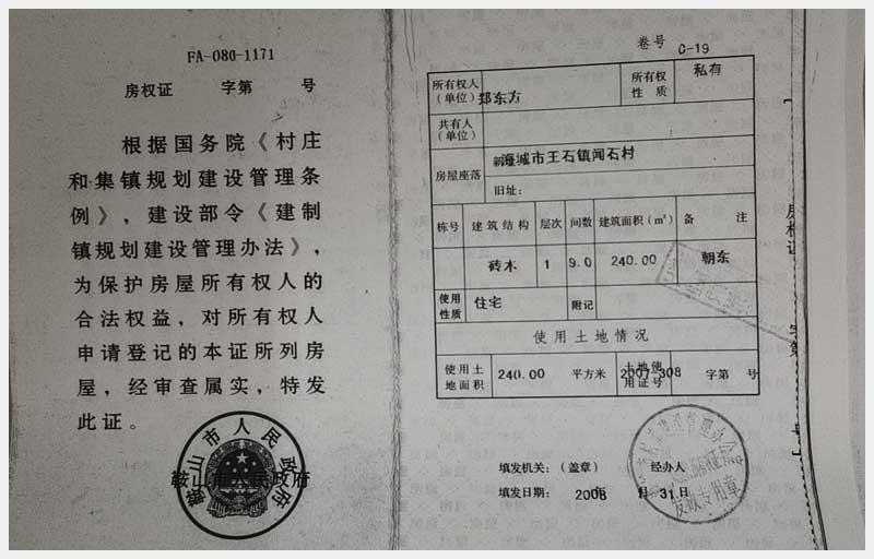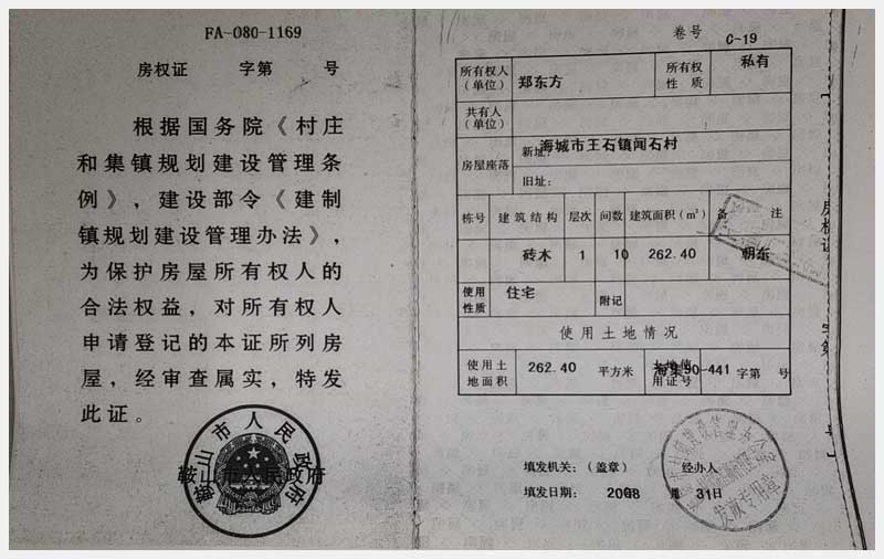 134號 海城市王石鎮(zhèn)聞石村房產(chǎn)
