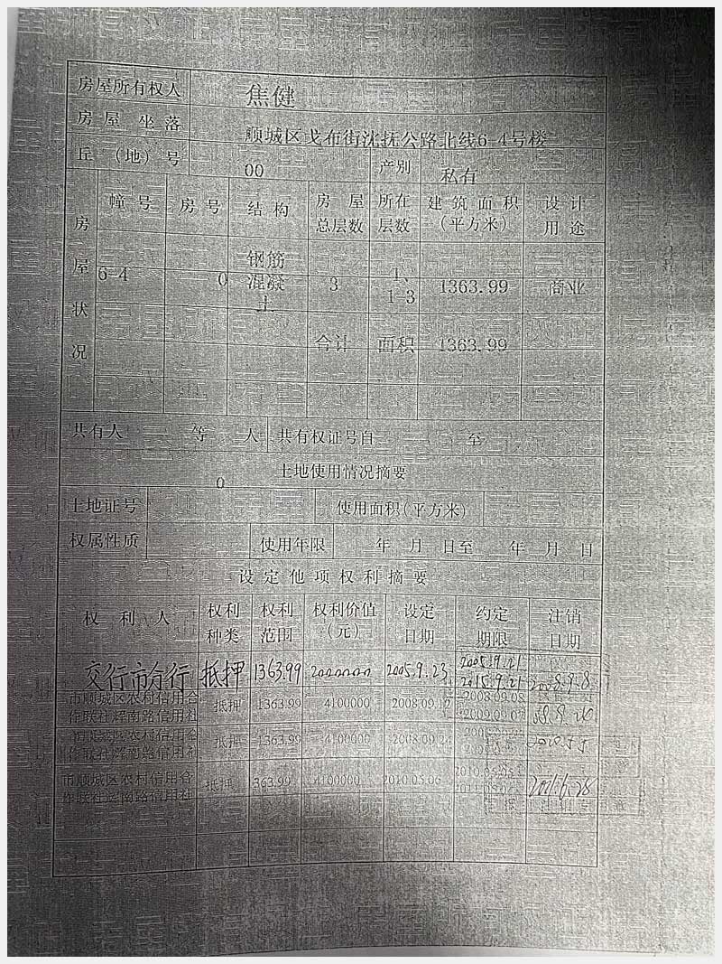 名稱:撫順市順城區(qū)戈布街沈撫公路北線6-4號樓房產(chǎn) 面積:1363.99㎡ 瀏覽次數(shù):1198