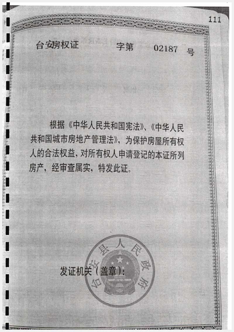103號(hào) 臺(tái)安鎮(zhèn)大慶路北西段張謙開(kāi)發(fā)樓房產(chǎn)
