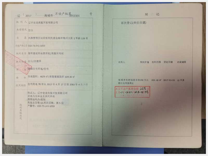 名稱:海城市興海管理區(qū)站前街利民委金海岸海州大街1甲棟5處房產(chǎn) 面積:104.3㎡/戶(5、6、8、10、11樓) 瀏覽次數(shù):1652